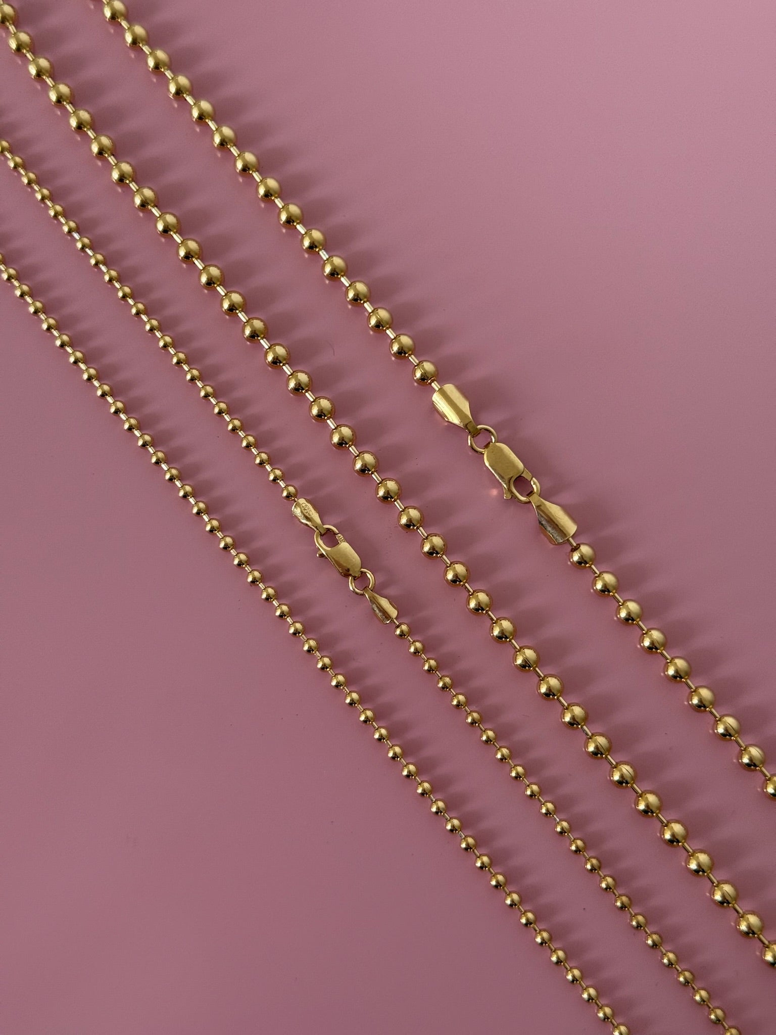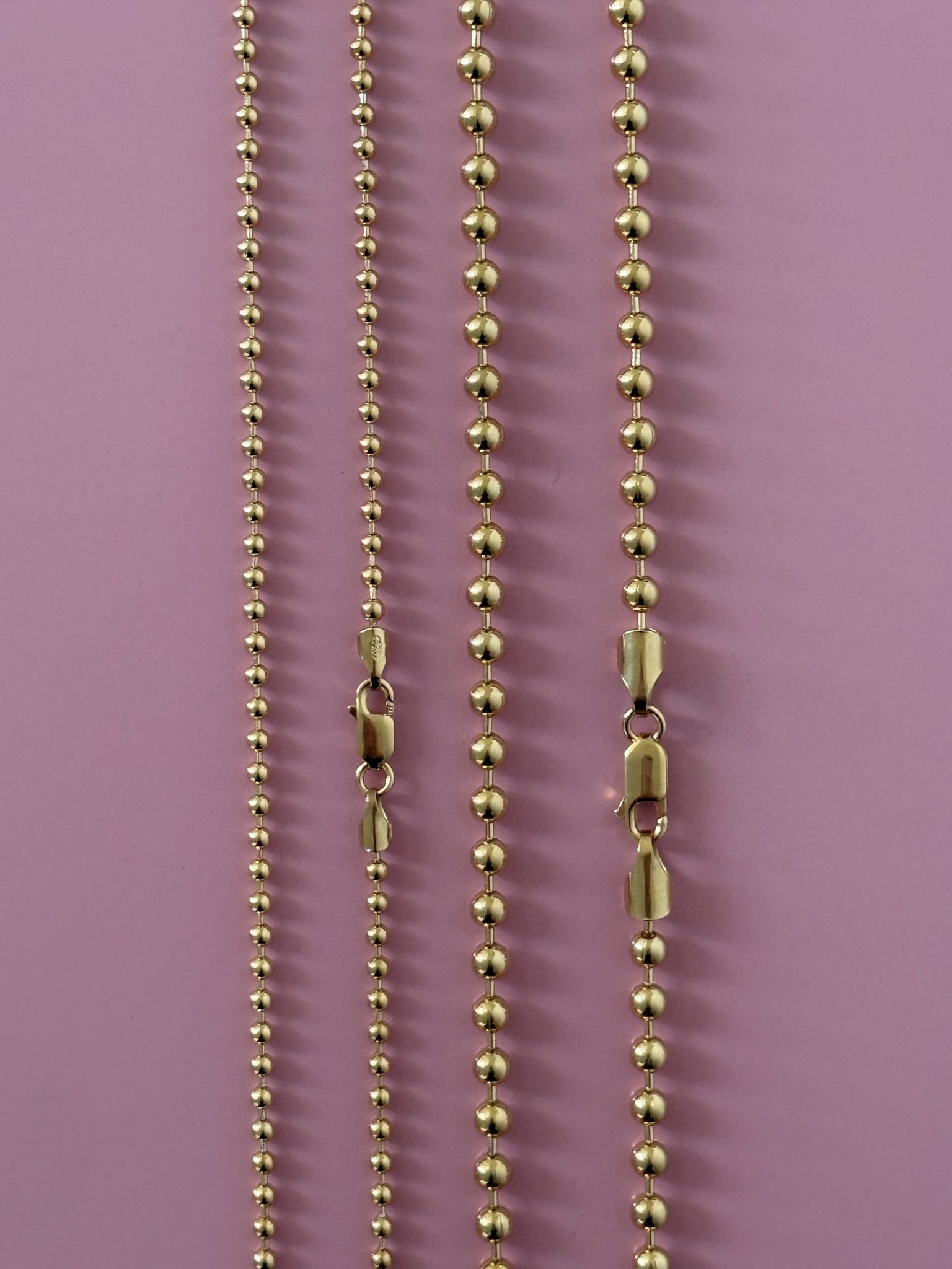 The Baller Chain is available in both a Baby Baller (2mm balls) and Big Baller (4mm balls) size, both with a length of 45cm
