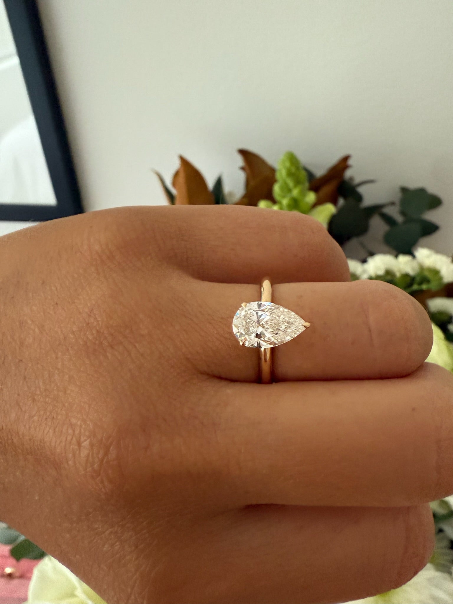 Ring pictured is 2 carat and has 3 prongs. Depending on diamond size, we will recommend number of prongs.