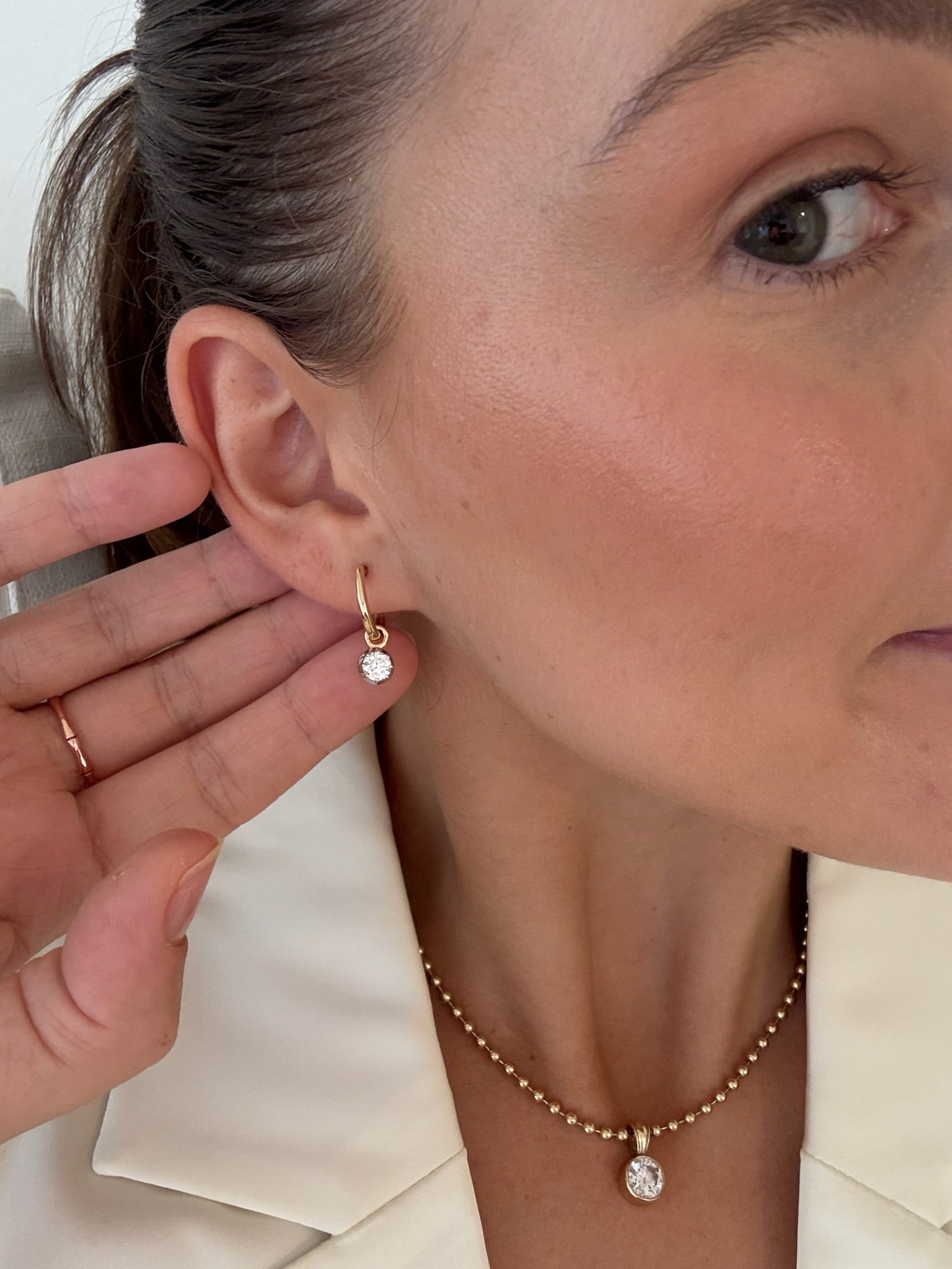 A solid 14k yellow gold hoop, accompanied by round brilliant diamonds set in a 14k white gold Georgian-inspired setting. A secure double-lock keeps them on from day to night.